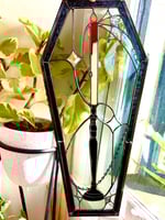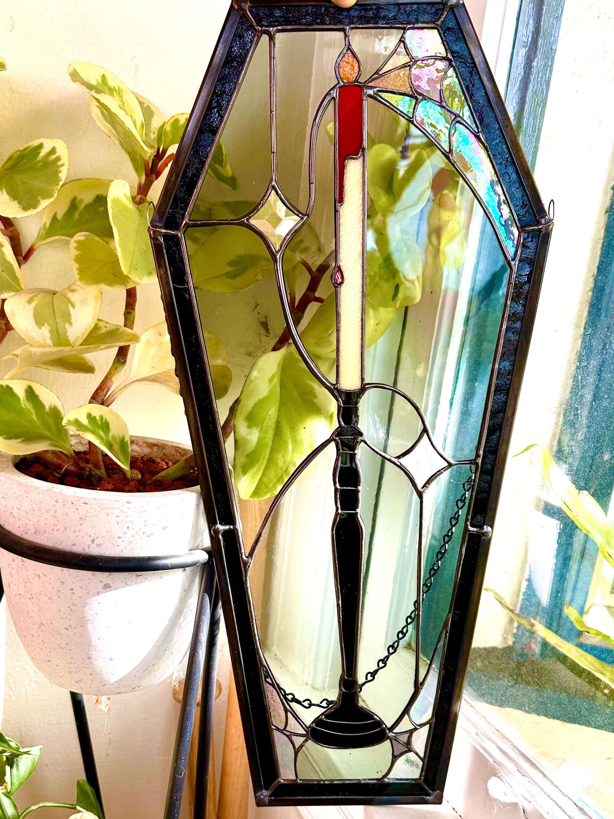Hang this handmade, stained glass panel year round to at a little whimsy and macabre to your daily life.