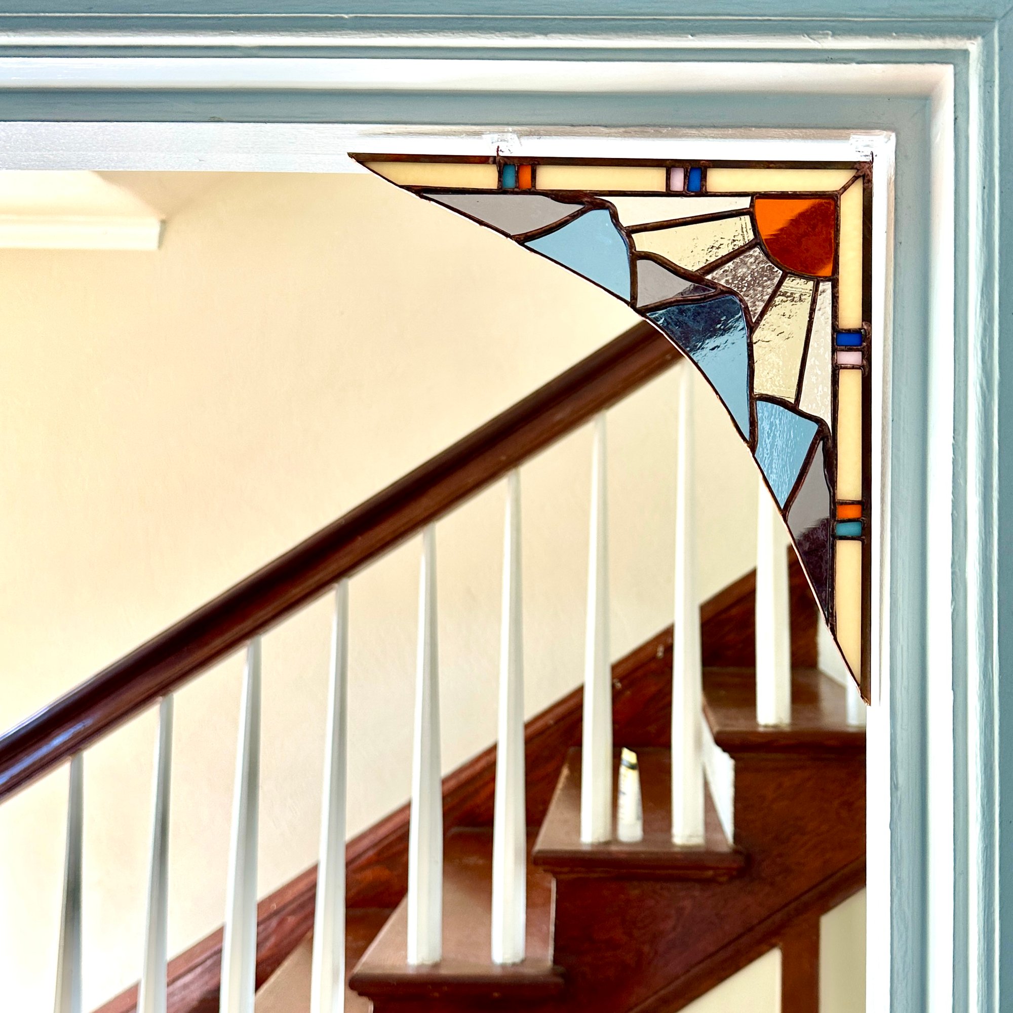 At 90 degree angles these elegant corner decorations can go in any entryway or window. They are a beautiful way to add whimsical personality to your home. They measure about 8” and are hand made using the copper foil technique. They contain lead so handle with care.