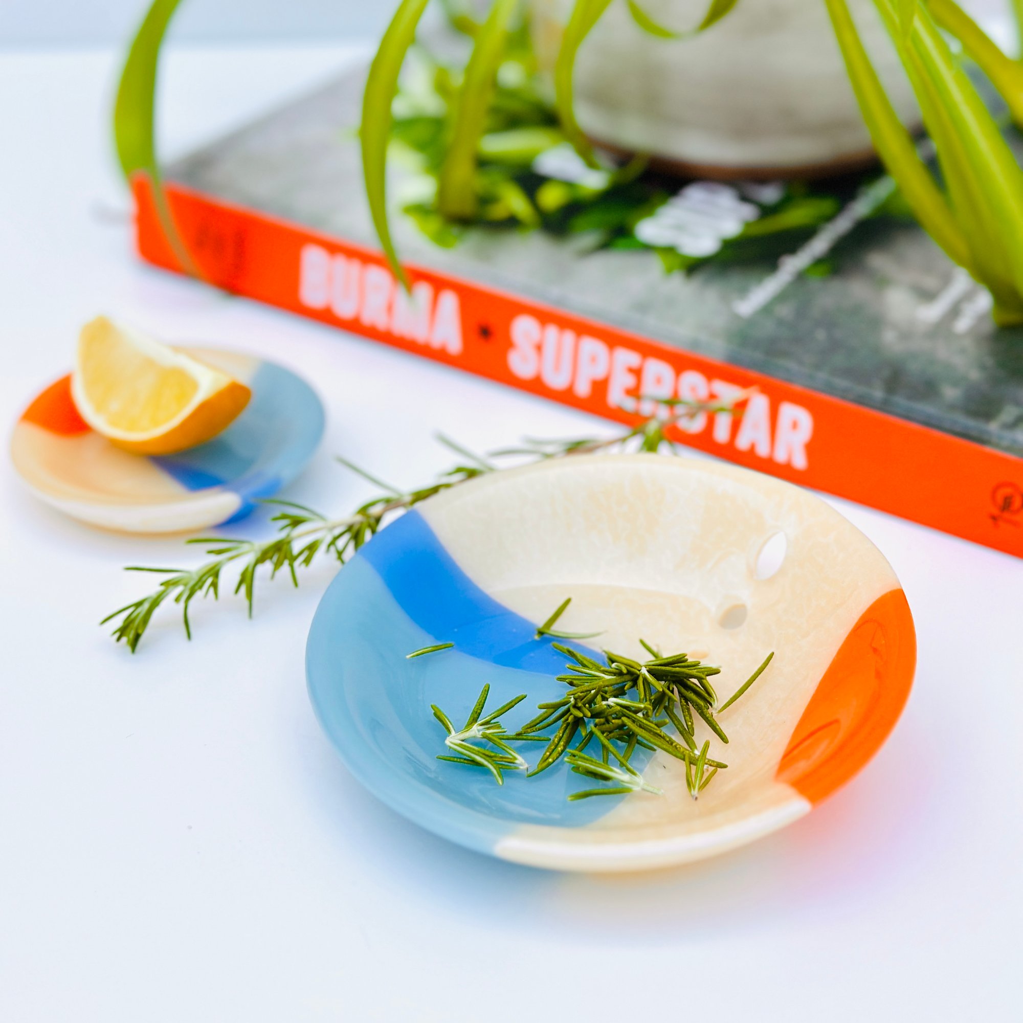 Bring a touch of wild beauty to your kitchen with this handmade fused glass herb stripper from the mountain collection. Inspired by the serenity of Denali, this 4.5" dish is both functional and artful.