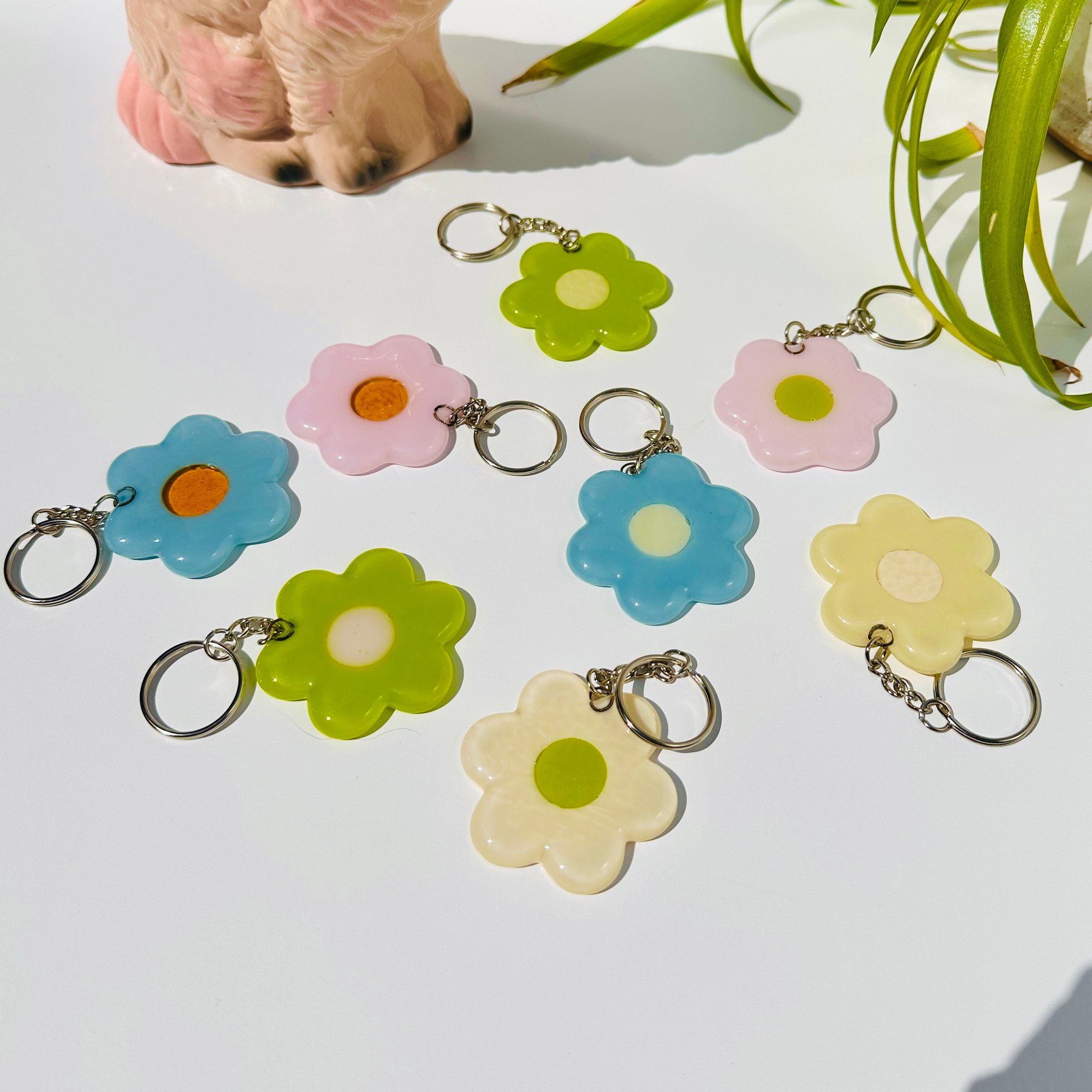Carry a little sunshine wherever you go. These 2" daisy keychains feature a bold, single daisy in bright, punchy colors-each one handmade and full of personality.