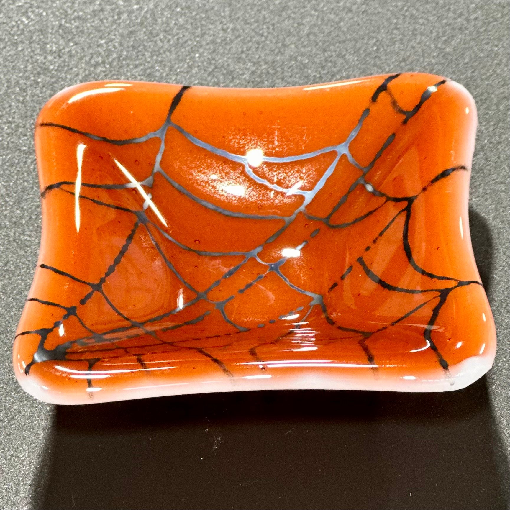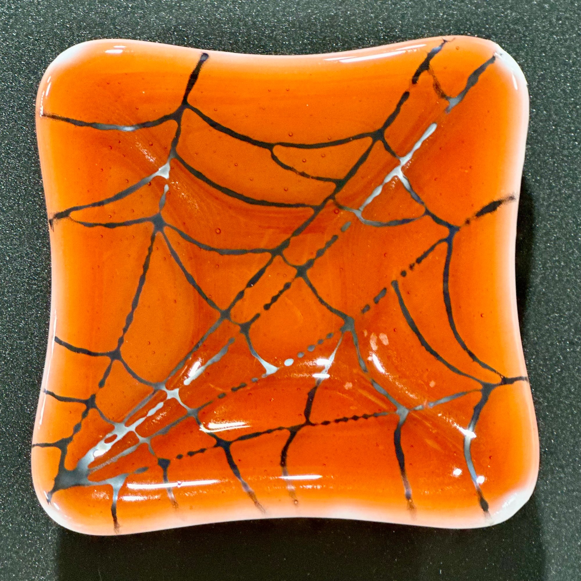small, square, spiderweb dish (large corner web design)-3.5"